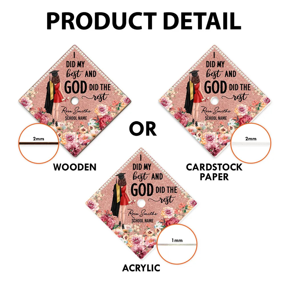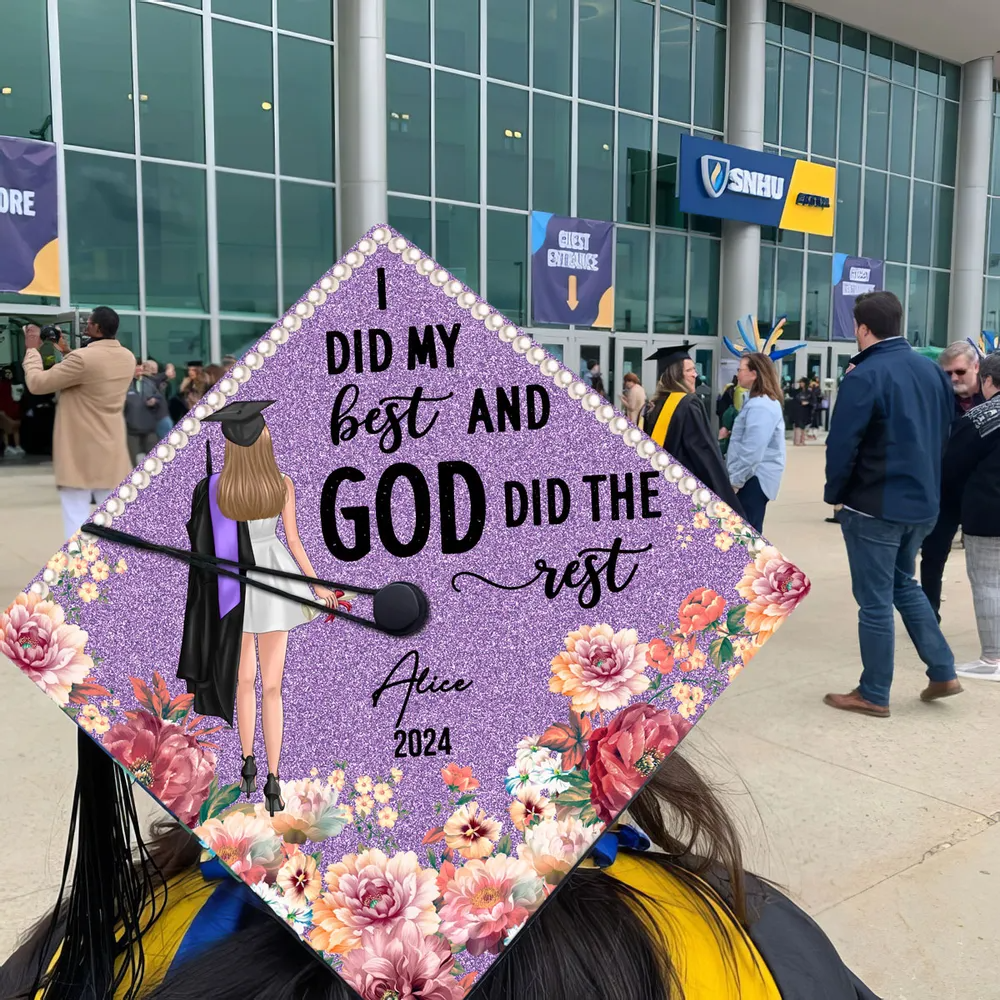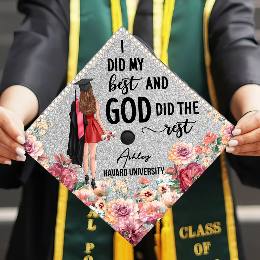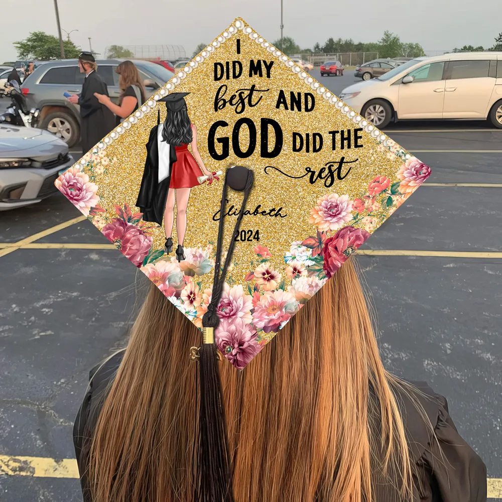 Mũ đội đầu tốt nghiệp được cá nhân hóa là hình thức thể hiện bản thân tối ưu và là cách chuyên nghiệp để trang trí mũ tốt nghiệp của bạn. Chúng tôi in thiết kế của bạn trên một tấm bìa cứng hoặc nhựa vinyl chất lượng cao, bền, vừa khít trên mũ tốt nghiệp của bạn với sự hỗ trợ của chất kết dính của chúng tôi.