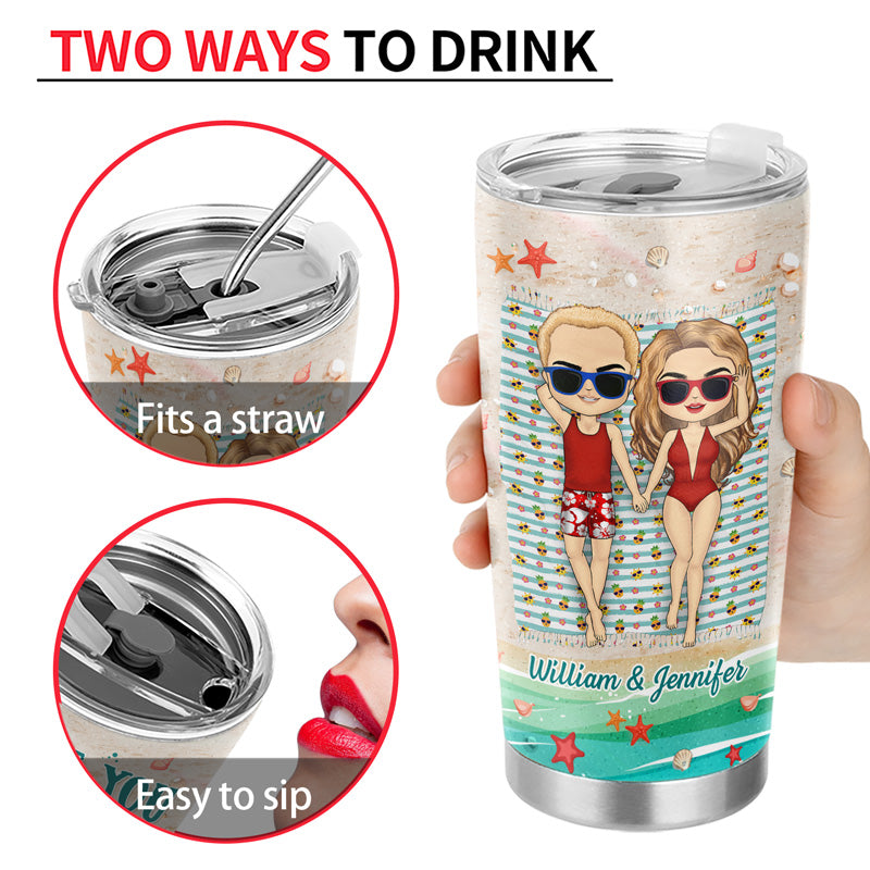I Love You To The Beach And Back Couple Husband Wife - Gift For Couple - Personalized Custom Tumbler