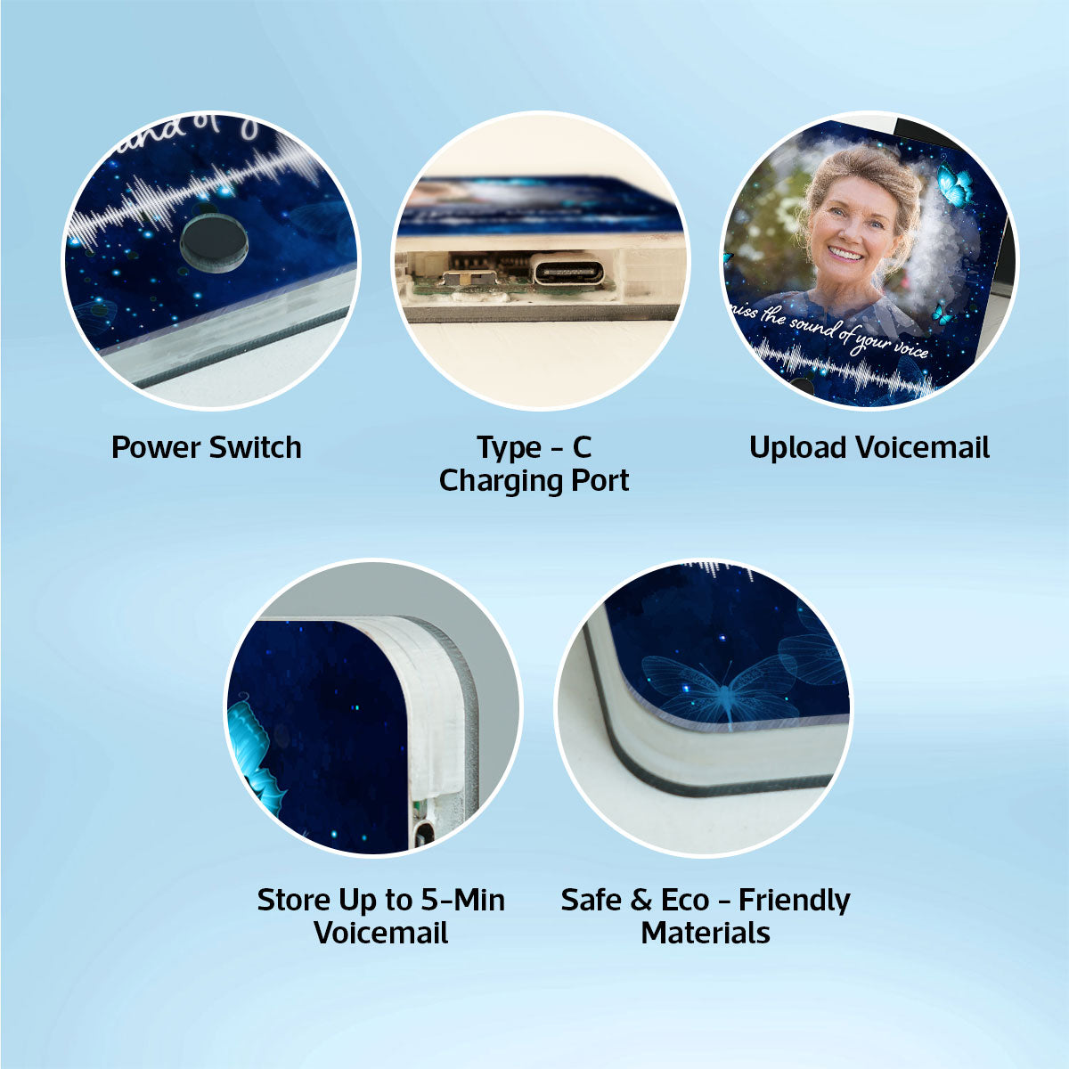 • 🔋 Recharge & Replay: Featuring a USB-C fast charging port, so you can keep their voice alive and vibrant for years to come.