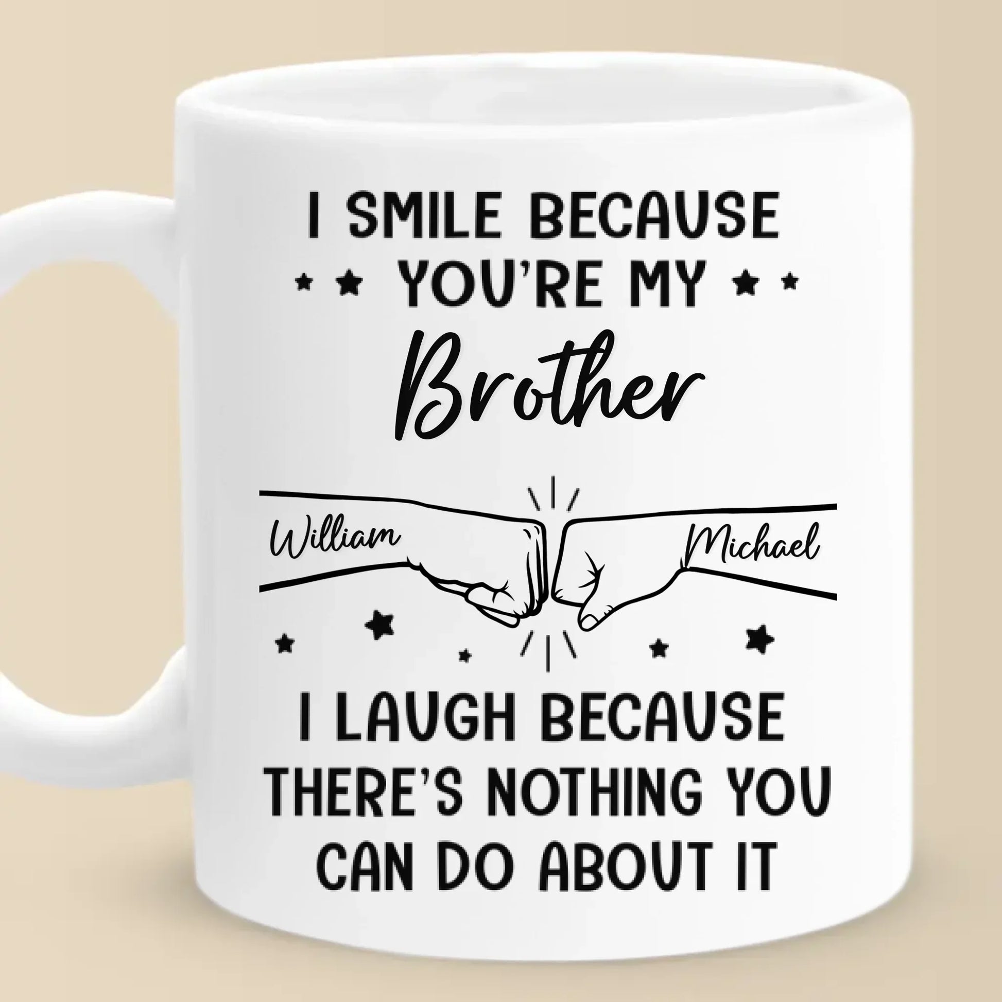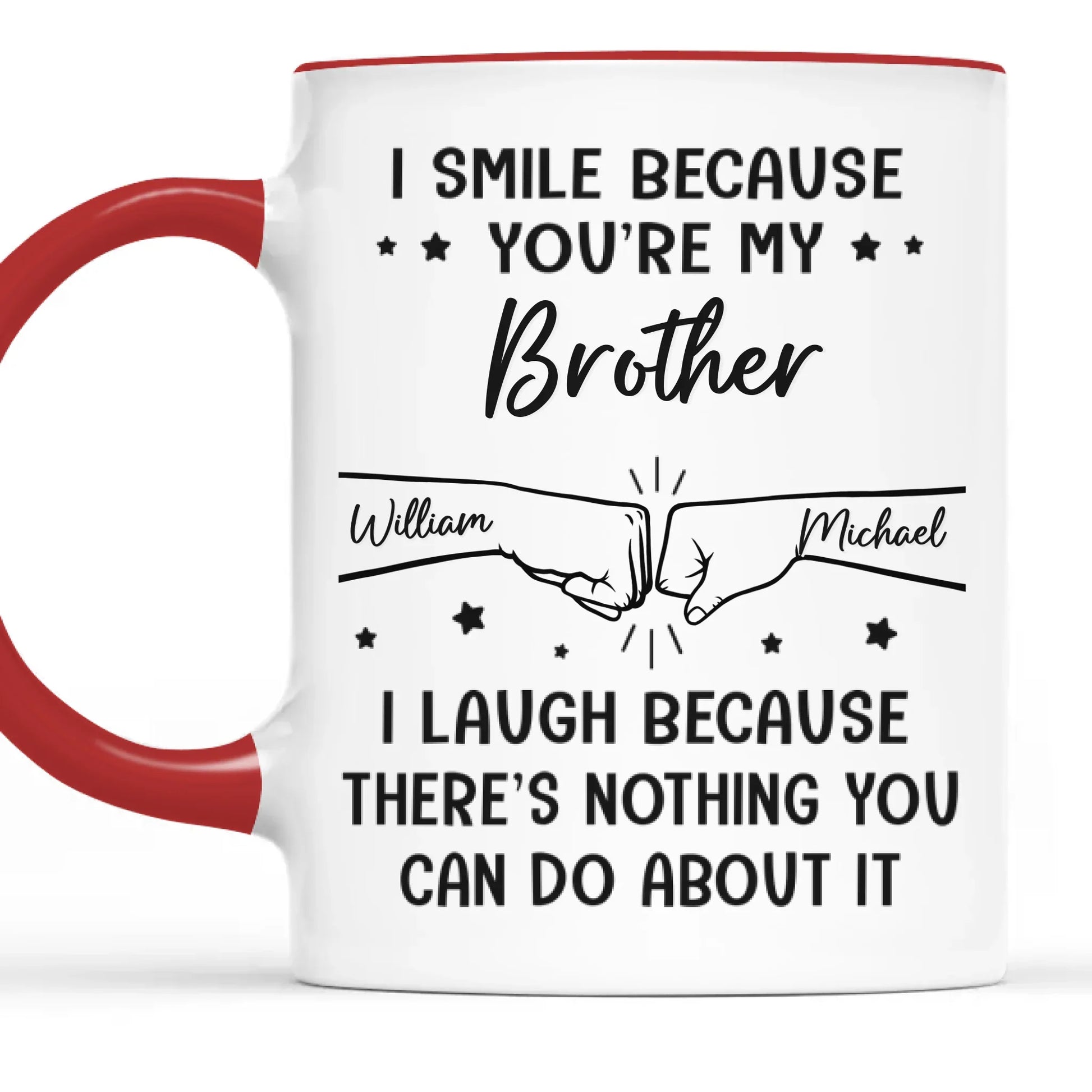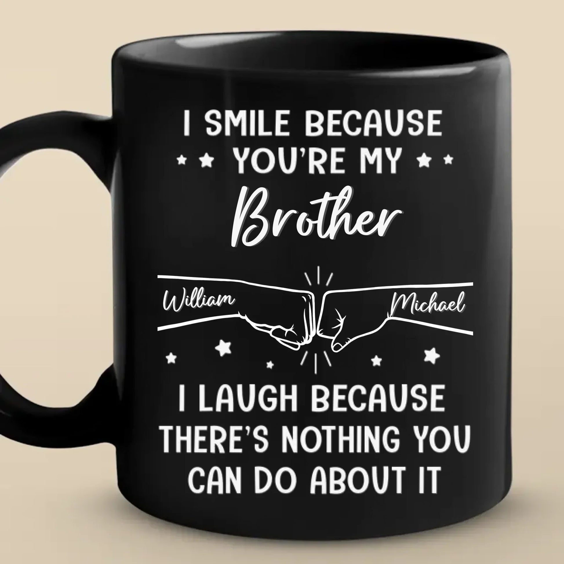 I Smile Because You're My Brother - Family Personalized Custom Black Mug - Gift For Family Members