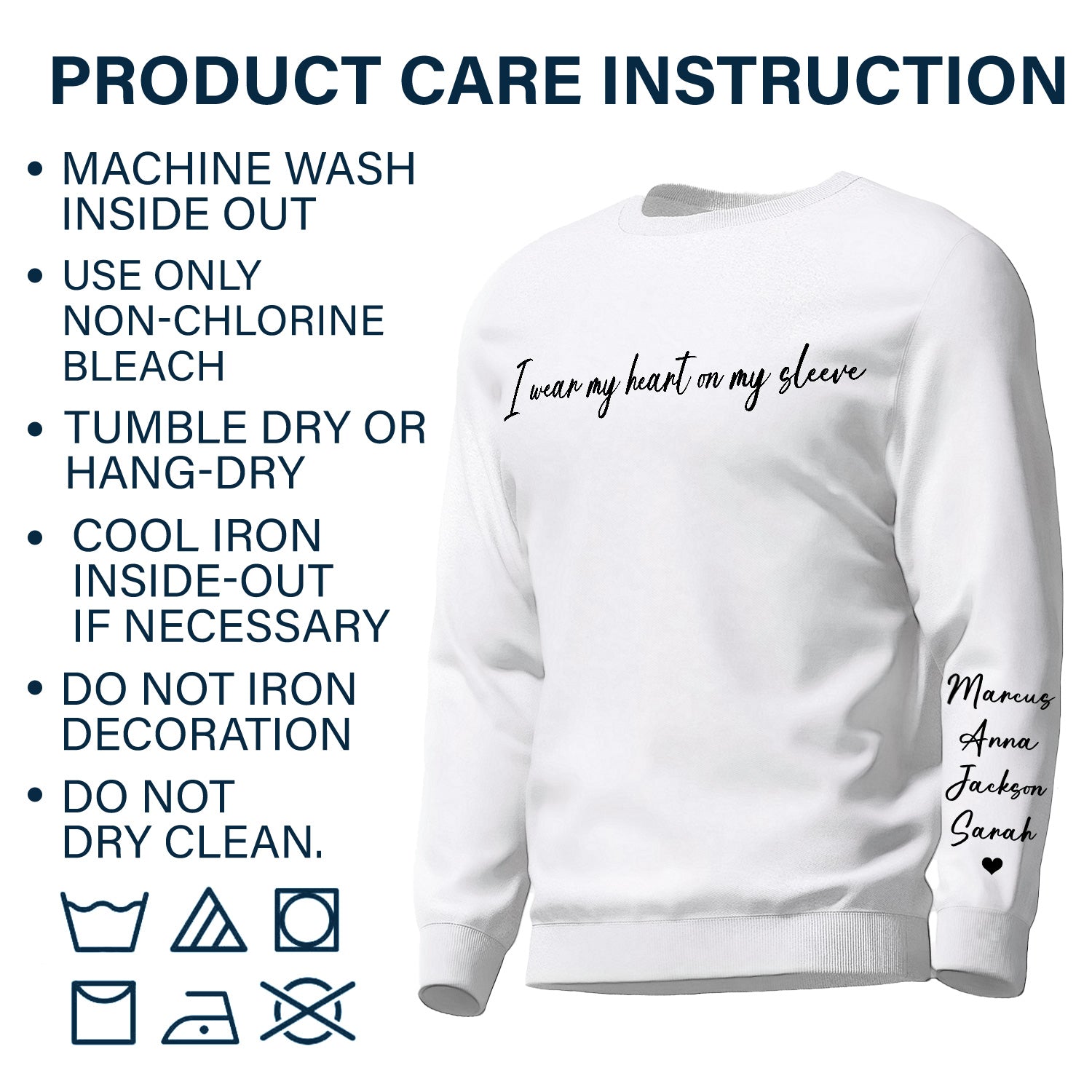 • Care Instructions: Machine wash inside out, use only non-chlorine bleach, tumble dry or hang-dry and cool the iron inside-out if necessary. Do not iron if decoration and dry clean.
