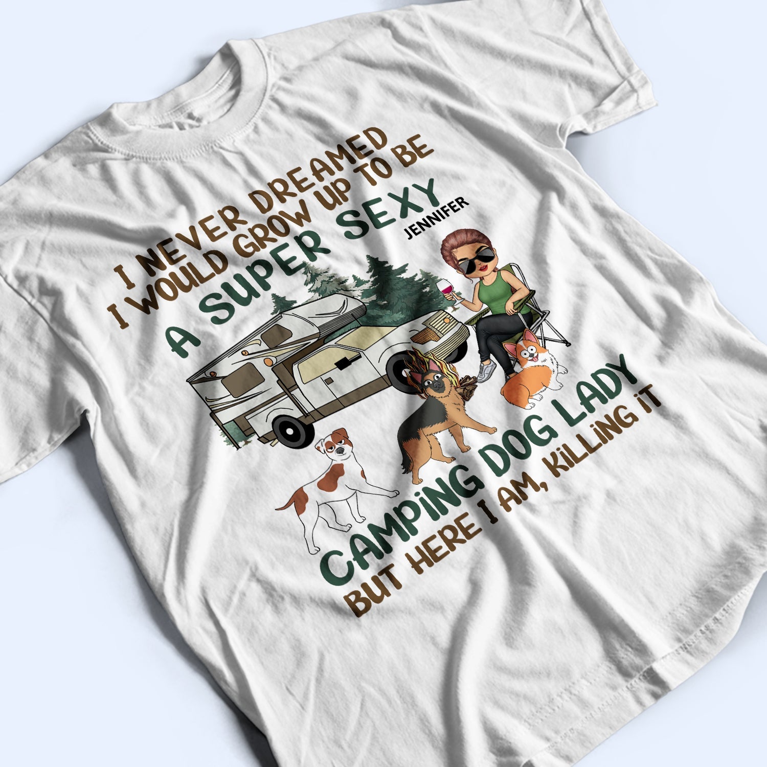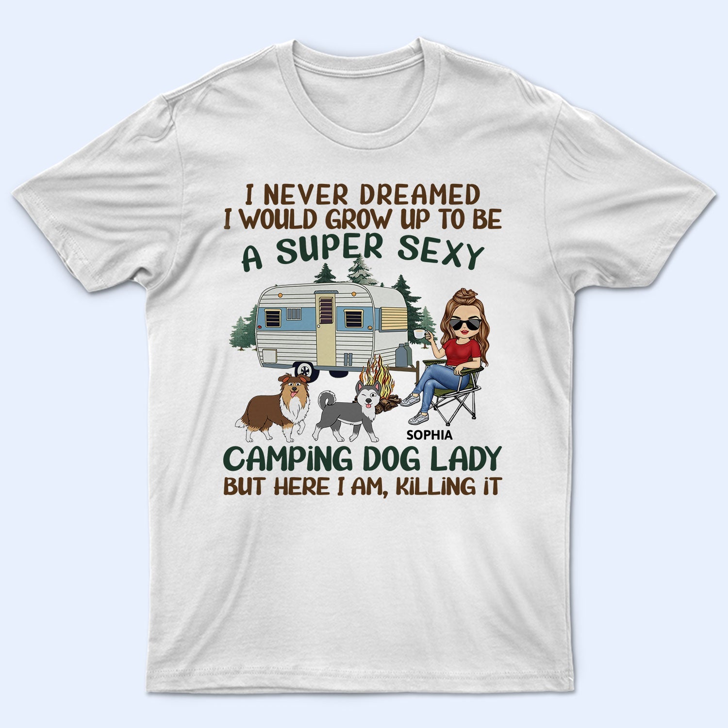 Message: "I never dreamed I'd grow up to be a super sexy camping dog lady but here I am, killing it".