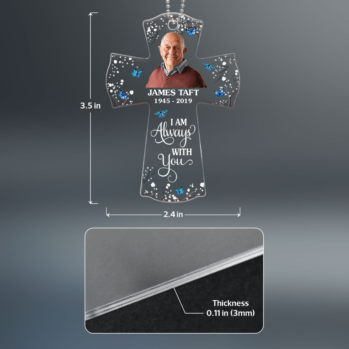 In Loving Memory Memorial Cross Personalized Photo Acrylic Ornament