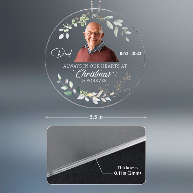 In Our Hearts At Christmas And Forever Memorial Keepsake Personalized Photo Acrylic Ornament