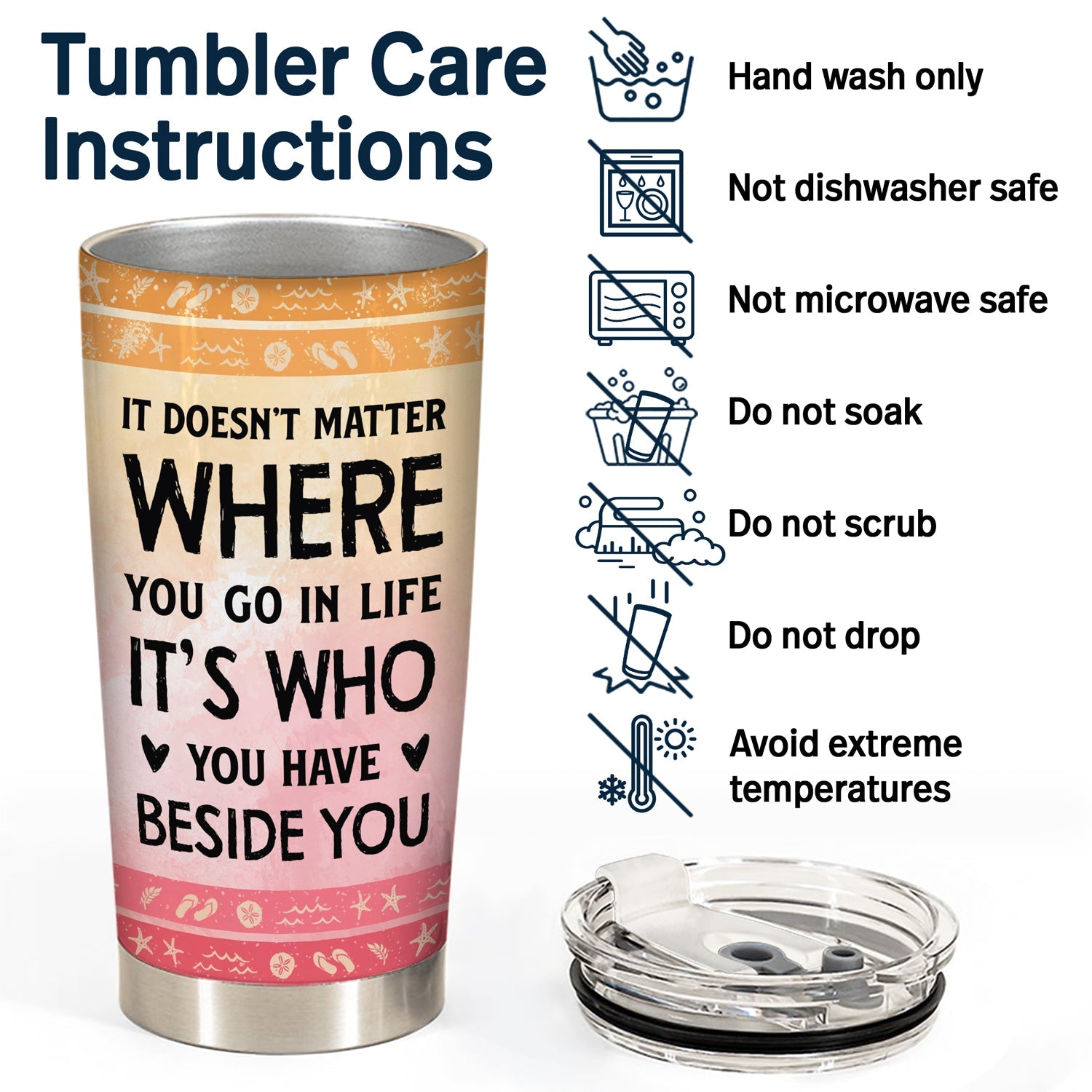 It Doesn't Matter Where You Go In Life Beach Traveling Couples - Personalized Custom Tumbler