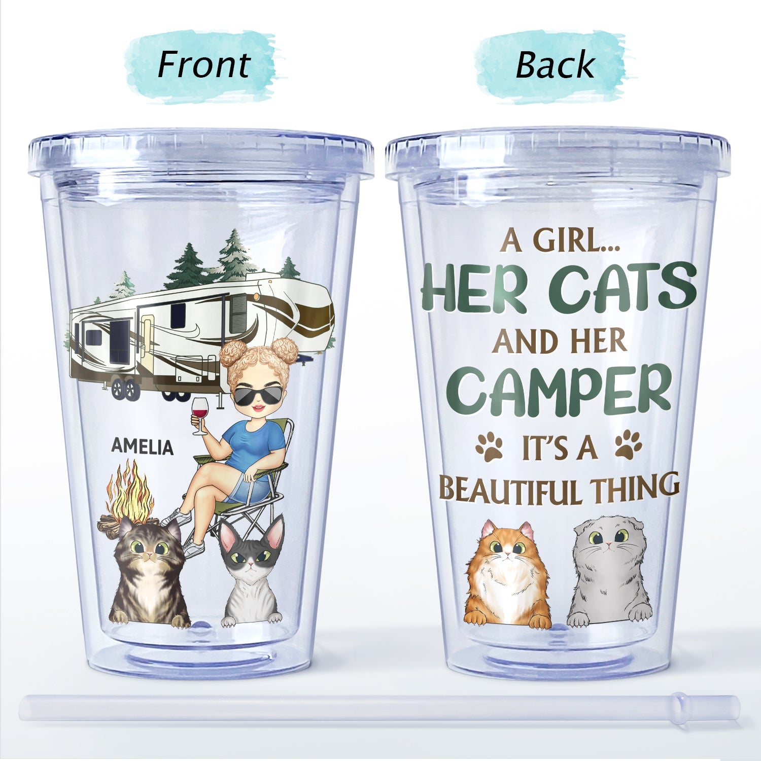Personalized Acrylic Insulated Tumbler, Cup with Lid & Straw, the perfect gift for couples, friends and family on any occasion: Summer, Christmas, Birthday, Valentine's Day, Father’s Day, Mother's Day, Anniversary or Graduation, etc.