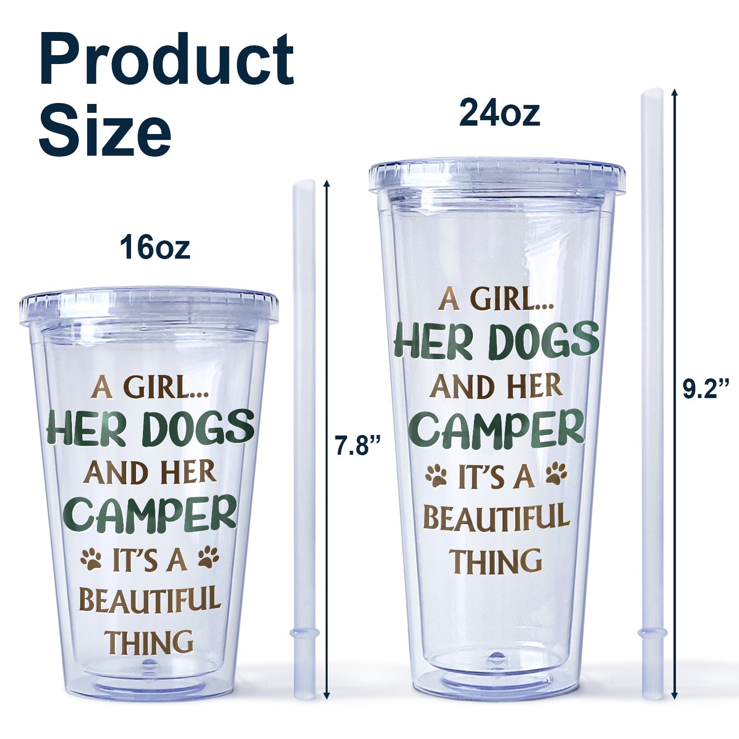 - 24 oz with 9.2 in straw (~ 23 cm)