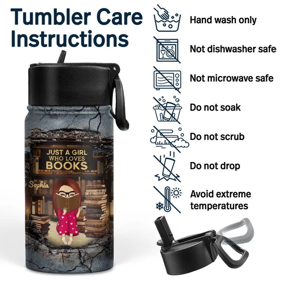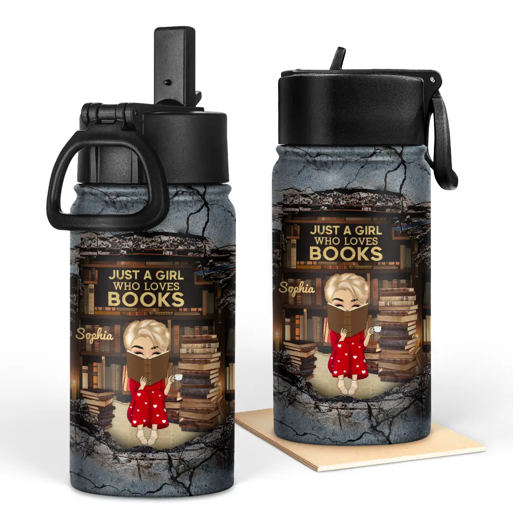 Just A Girl Who Loves Books Chibi - Personalized Kids Water Bottle