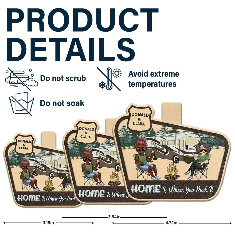 Keys To The Camper Chibi Camping Couple - Personalized Custom Shaped Leather Keychain