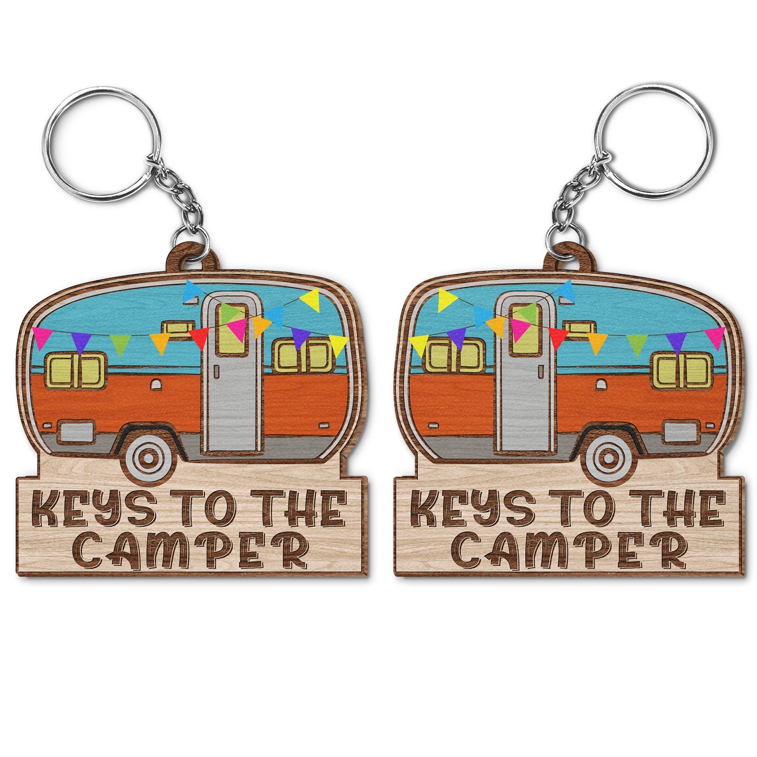 Keys To The Camper Vintage Trailer - Funny, Loving Gifts For Couples, Husband, Wife, Camping Lovers - Personalized Wooden Keychain