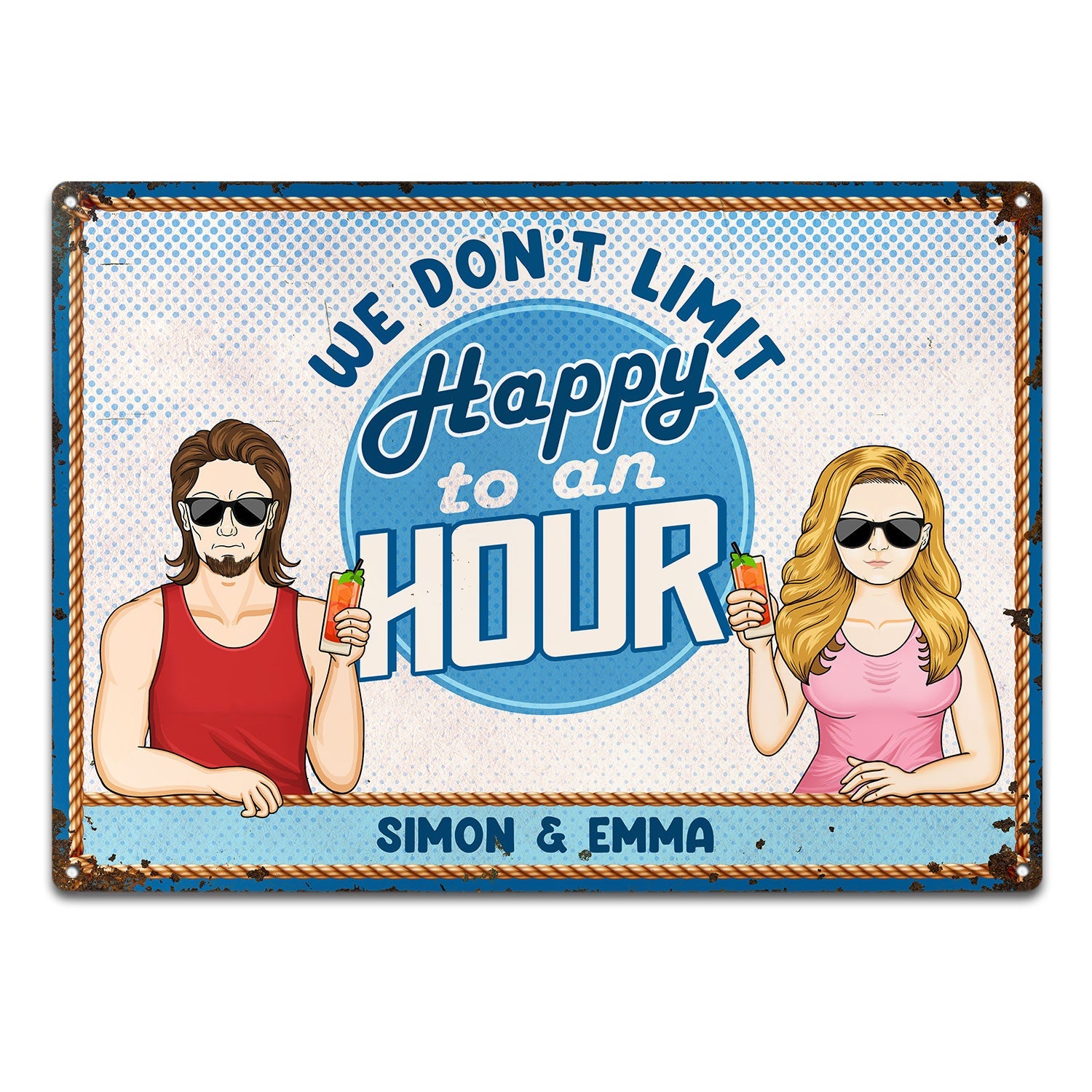Limit Happy To An Hour - Outdoor Decoration For Couples - Personalized Classic Metal Signs