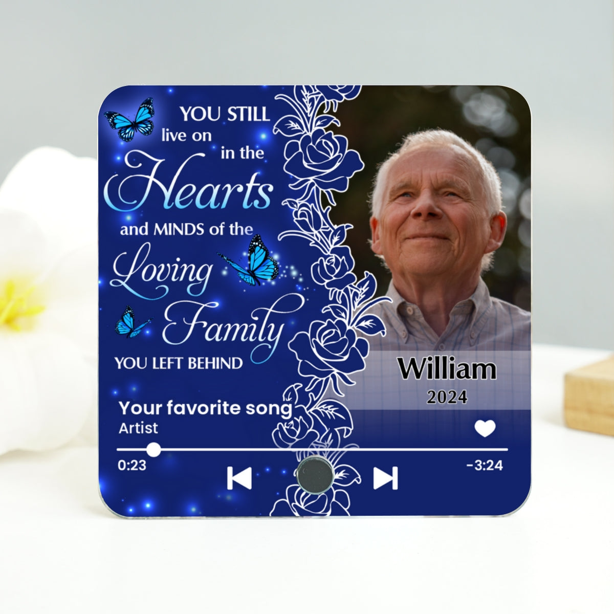 Live On In The Hearts And Minds Memorial Personalized Music Fridge Magnet, Sympathy Keepsake, Remembrance Gift