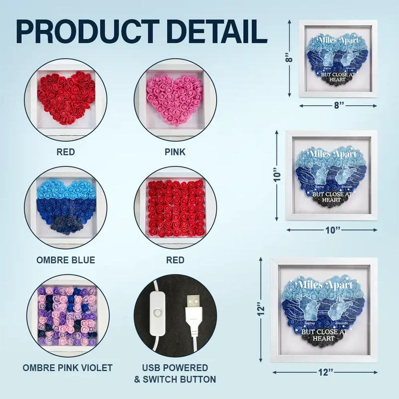 Long Distance State The Miles Don't Matte - Personalized LED Light Flower Shadow Box