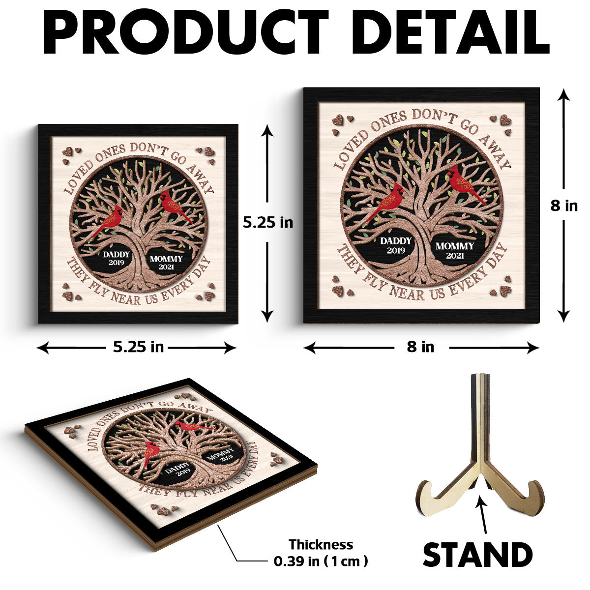 Memorial Cardinals Glitter Tree Personalized 2-layer Wooden Plaque