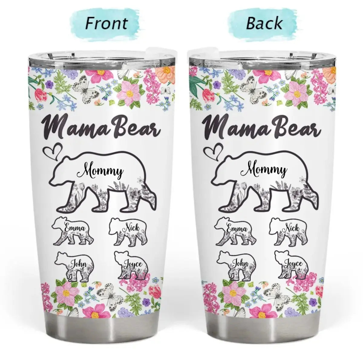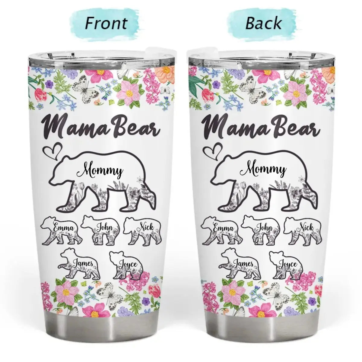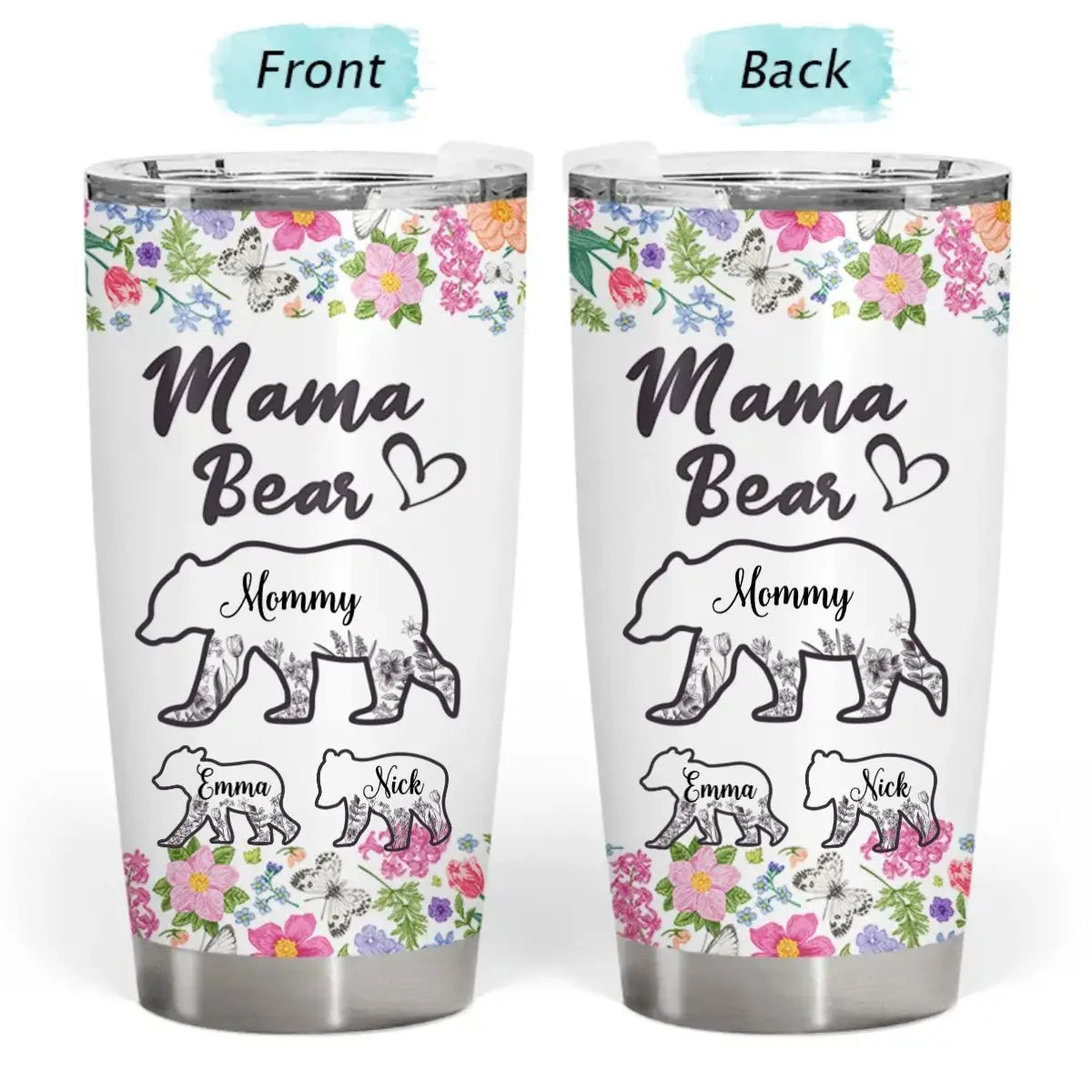 20oz Mother's Day - Floral Mama Bear - Personalized Tumbler Tumbler The Next Custom Gift