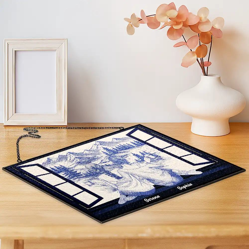 Mountain Cabin Window Toile Art Bestie - Personalized Horizontal Stained Suncatcher