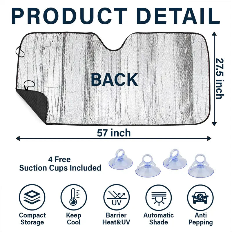 - High-quality material - Made from 100% Polyester and aluminum foil bubble plate. It blocks heat and sun, keeps your vehicle cool and protects against damage caused by hot sunlight.