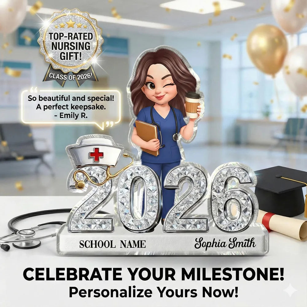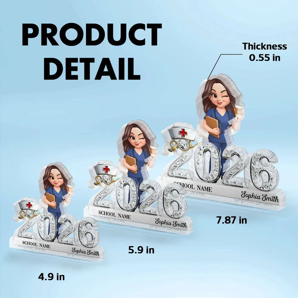 New Nurse Class Of 2026 2027 Shiny Effect 2D Flat - Personalized Acrylic Block Plaque - RN Gift, BSN Gift, Nursing Graduation Gift