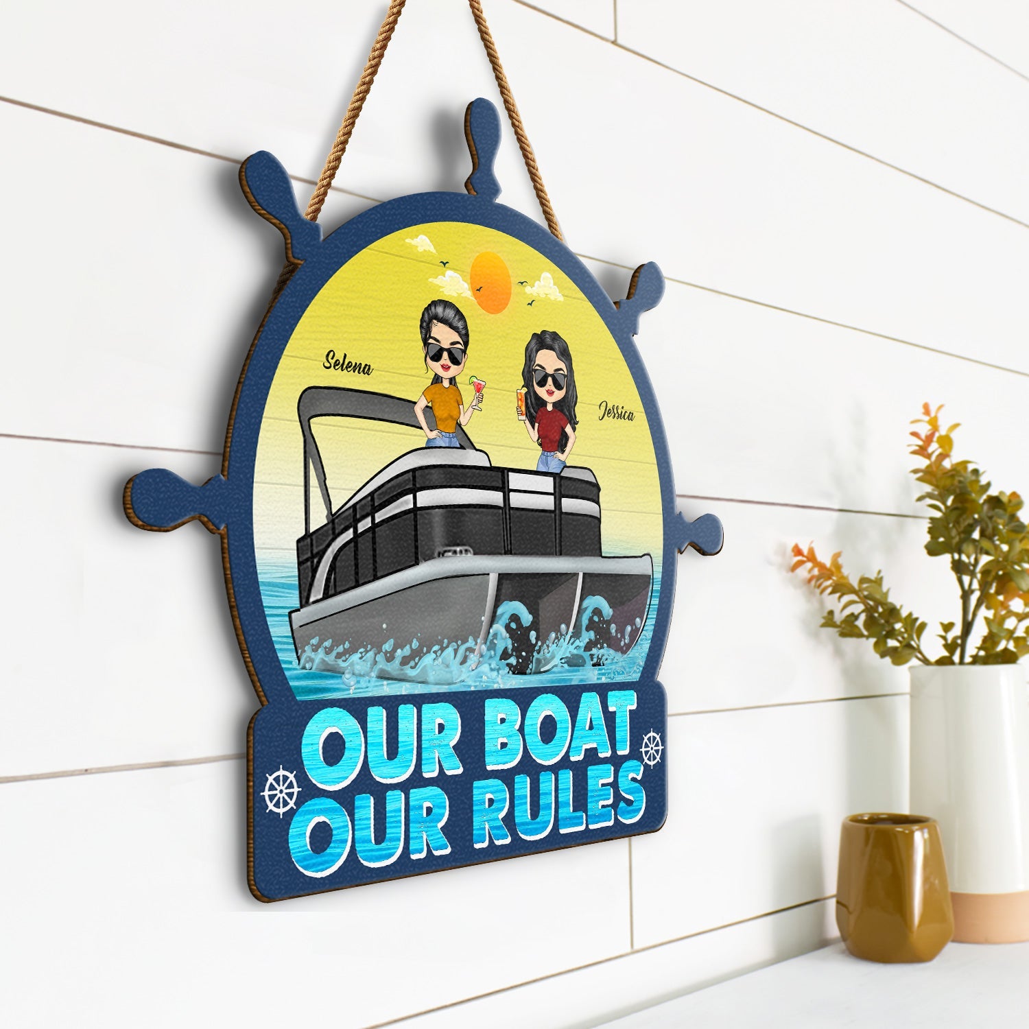 Our Boat Our Rules - Birthday, Decor Gift For Yourself, Couples, Pontoon Lovers - Personalized Custom Shaped Wood Sign