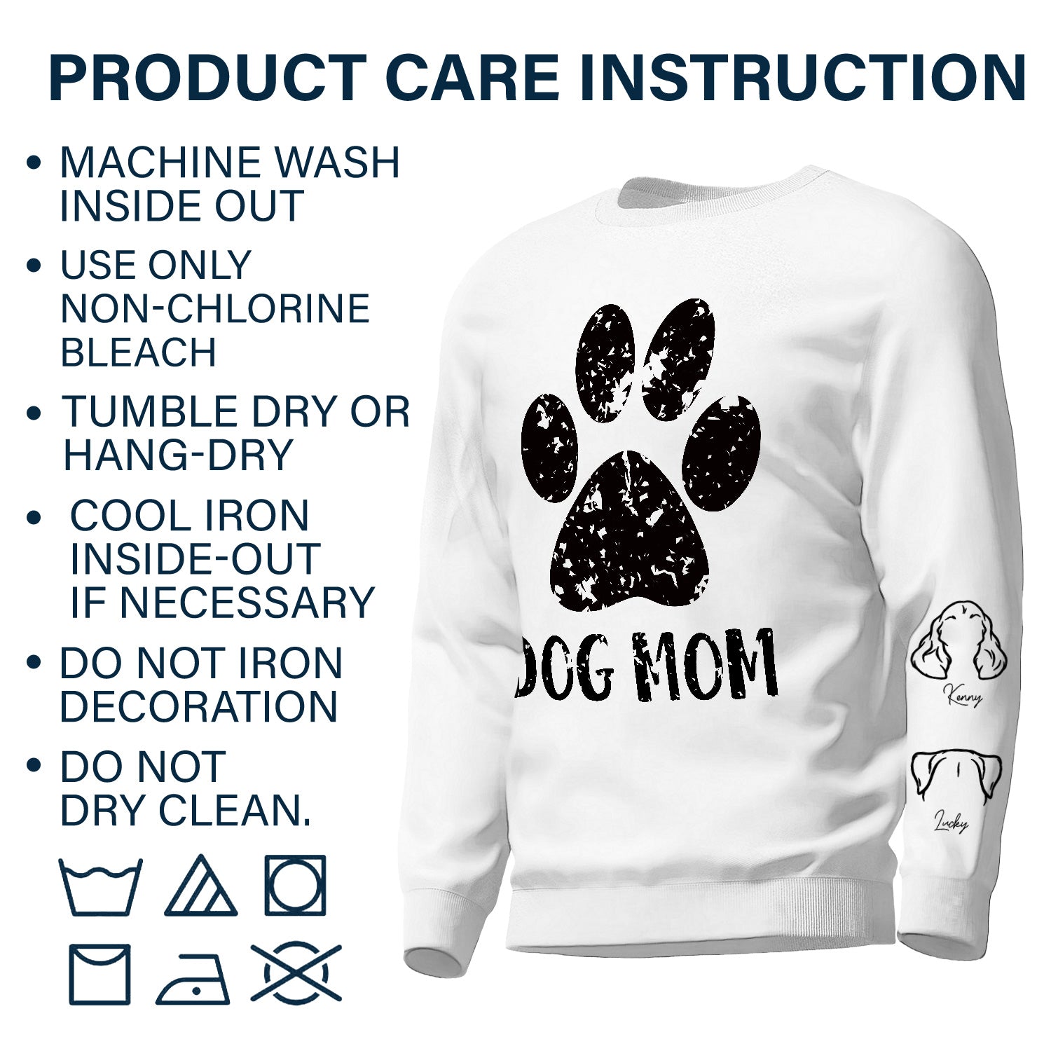 - Care Instructions: Machine wash inside out, use only non-chlorine bleach, tumble dry or hang-dry and cool the iron inside-out if necessary. Do not iron if decoration and dry clean.