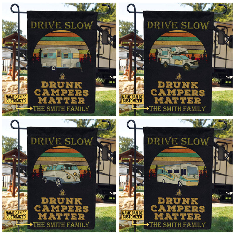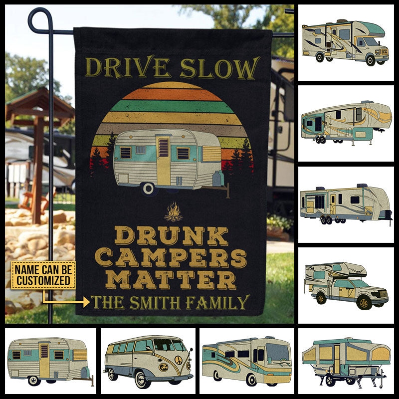 Personalized Camping RV Retro Sun Drunk Camper Customized Flag