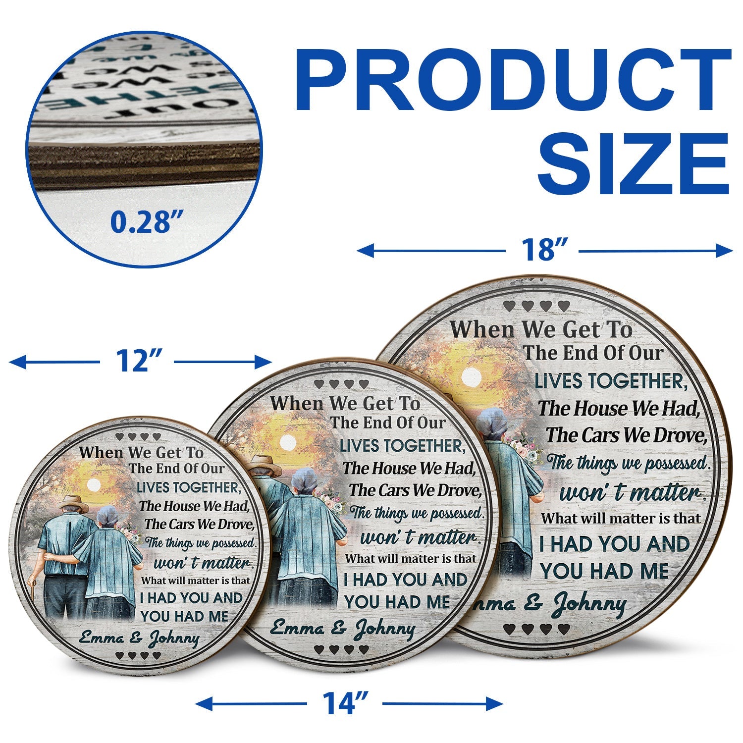 Message: "When we get to the end of our lives together, the house we had, the cars we drove, the things we possessed won't matter. What will matter is that I had you and you had me"