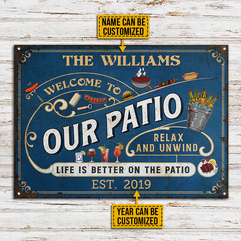 Personalized Grilling Patio Relax And Unwind Custom Classic Metal Signs