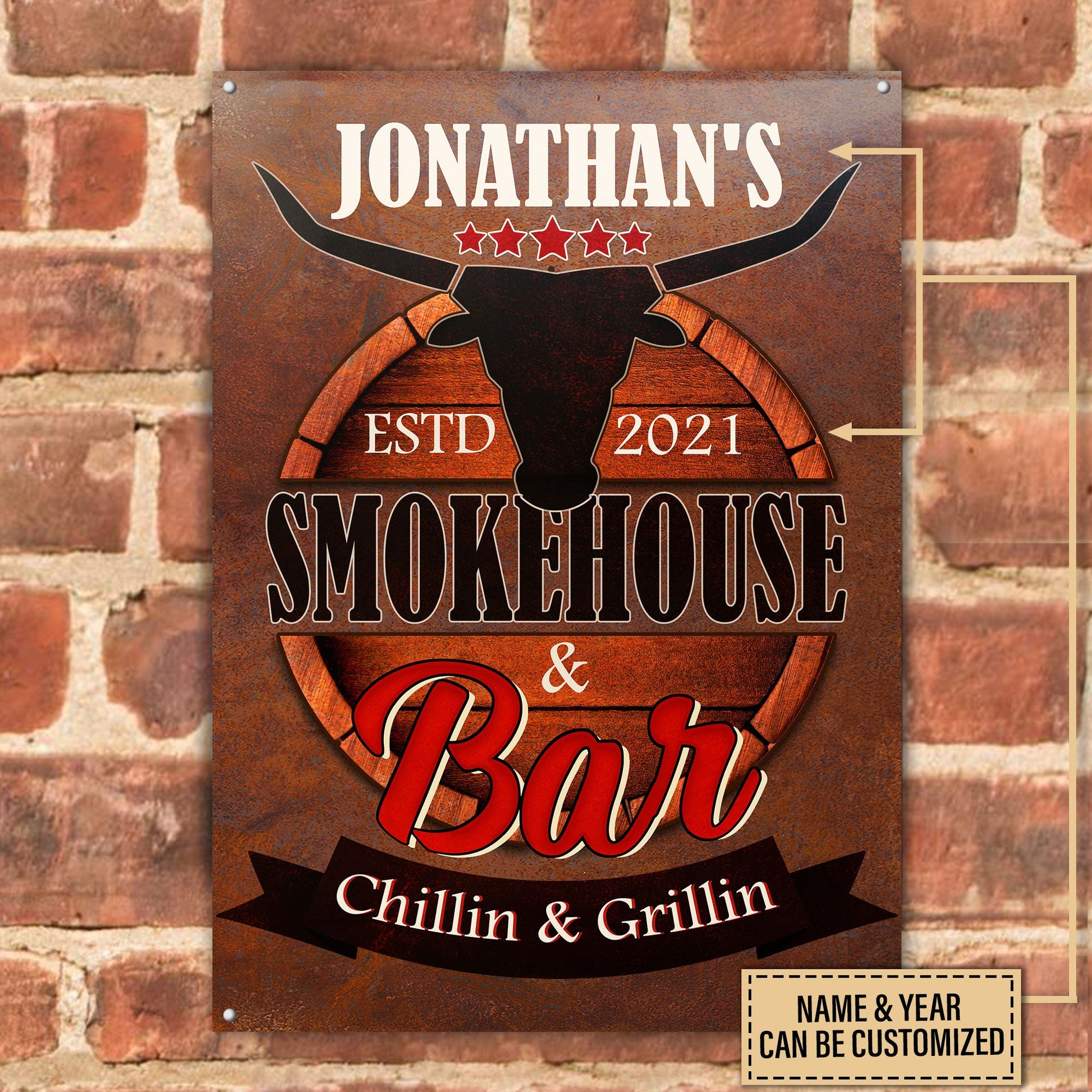 Personalized Grilling Smokehouse & Bar Chillin Customized Classic Metal Signs