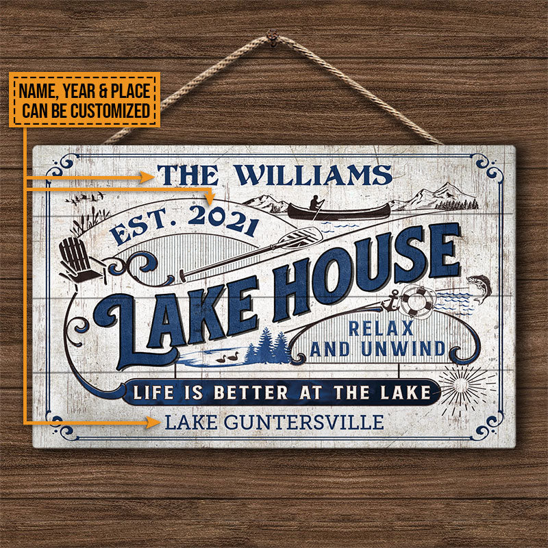 Personalized Lake House Life Is Better Custom Wood Rectangle Sign