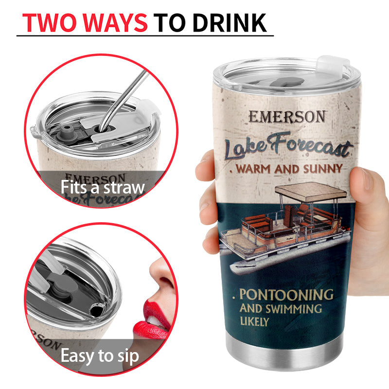 Personalized Pontooning Lake Forecast Warm And Sunny Customized Tumbler