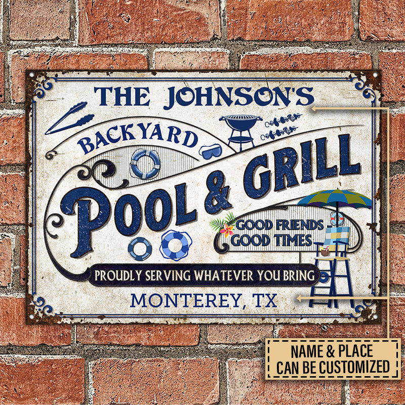 Personalized Pool Grilling Backyard Custom Classic Metal Signs