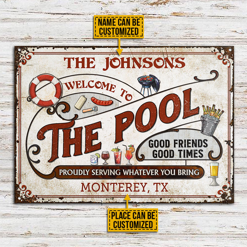 Personalized Pool Grilling Red Proudly Serving Custom Classic Metal Signs