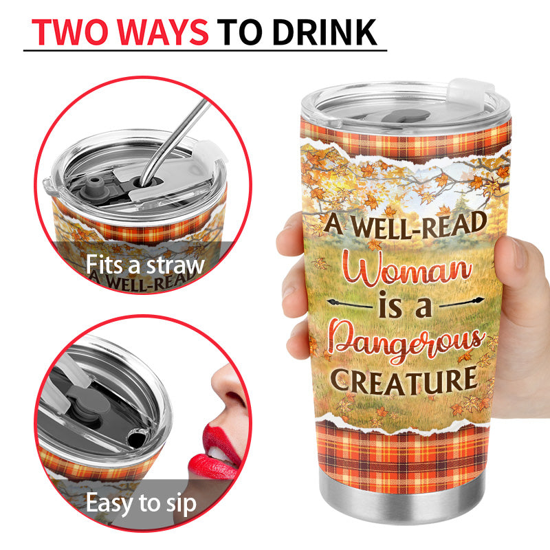 Personalized Reading Girl A Well-Read Woman Is A Dangerous Creature Custom Tumbler