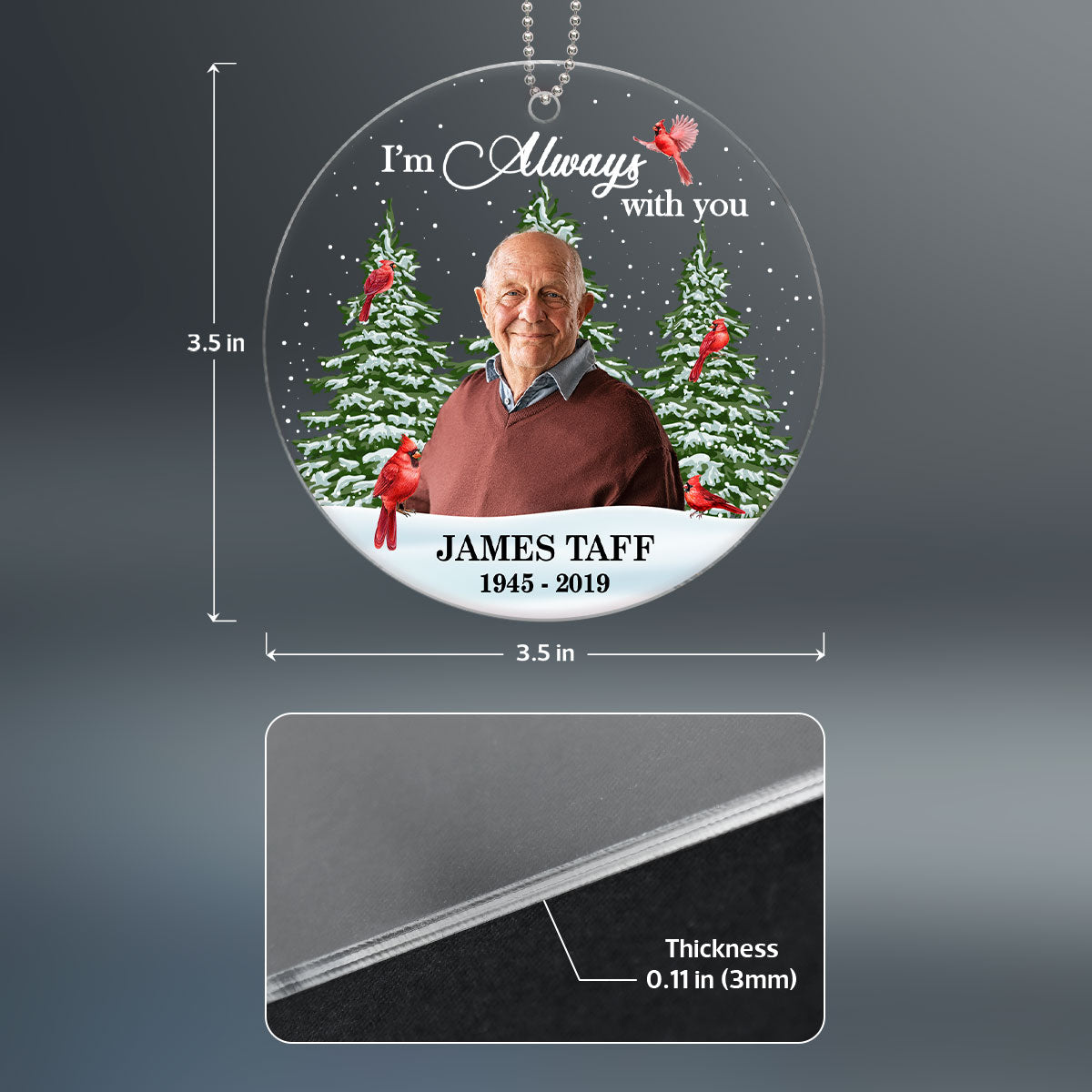 Photo Inserted Christmas Trees Cardinal Always With You Remembrance Memorial Keepsake Sympathy Gift Christmas Personalized Acrylic Ornament