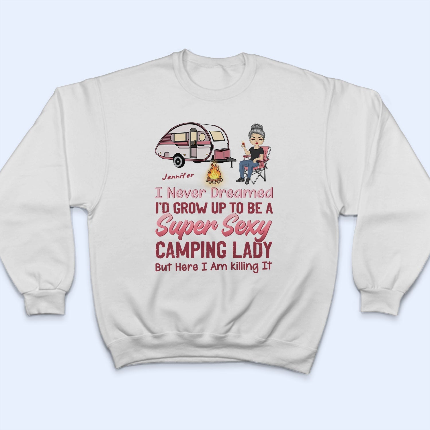 Message: "I Never Dreamed I’d Grow Up To Be A Super Sexy Camping Lady But Here I Am killing It".