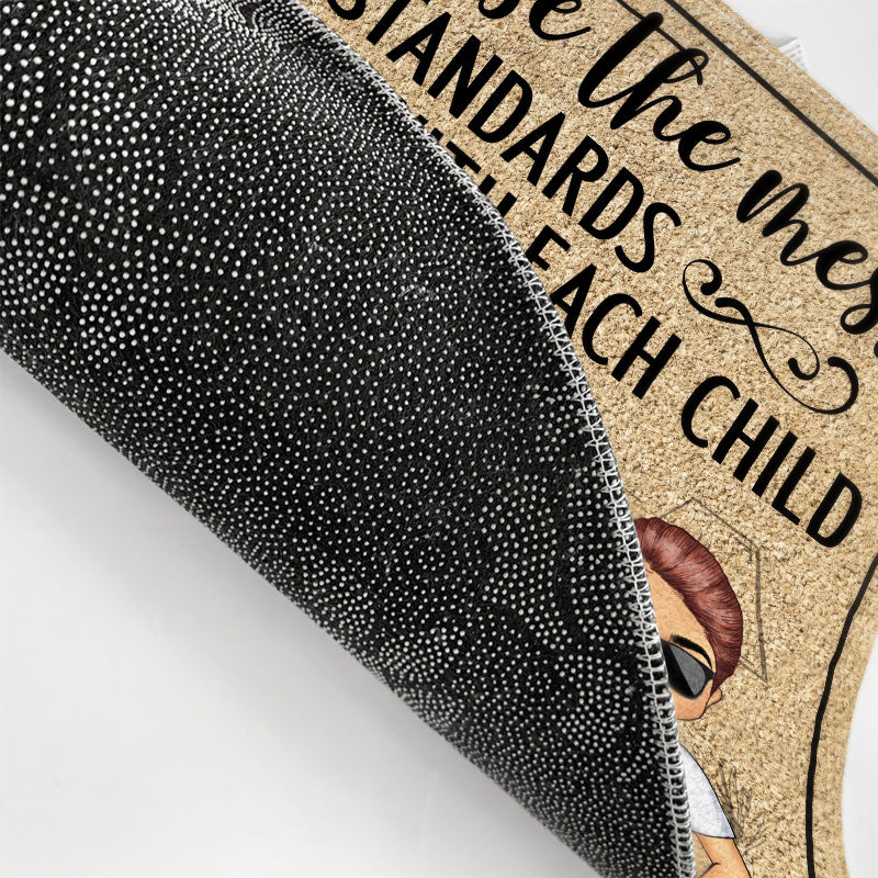 Please Excuse The Mess Our Standards Have Lowered With Each Child Chibi Couple Husband Wife Family - Personalized Custom Doormat
