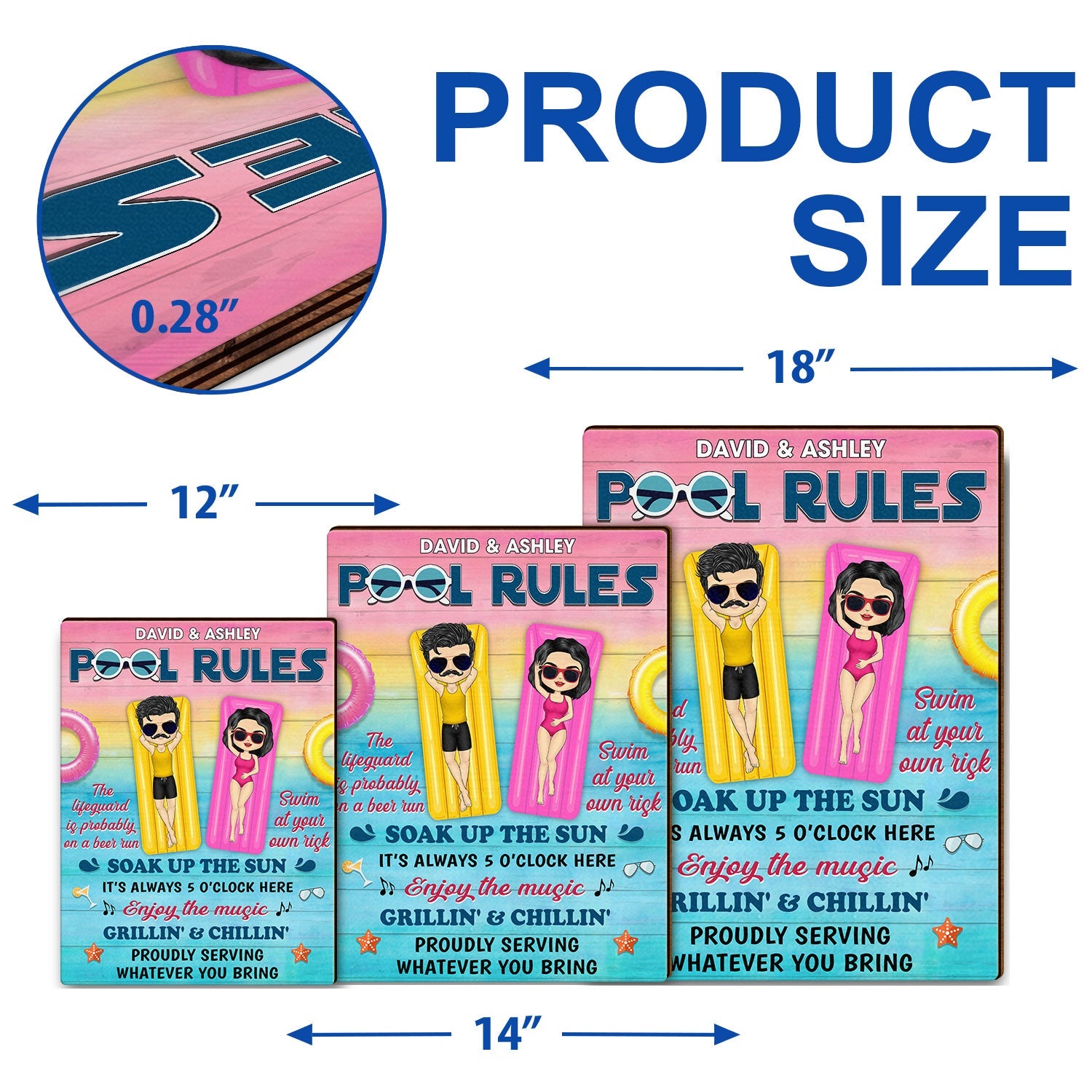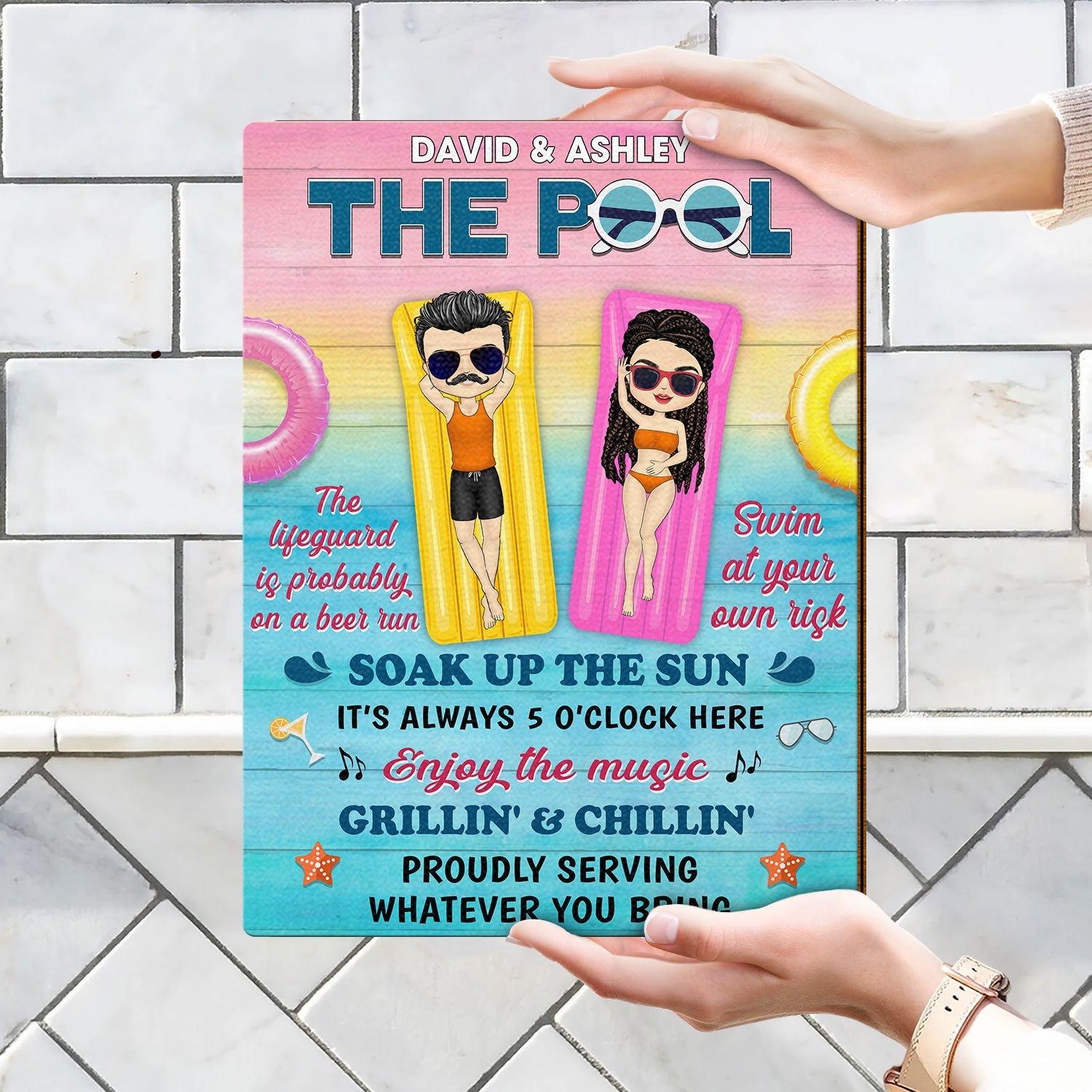 Pool Rules Swim At Your Own Risk Grilling Couple Husband Wife - Pool Sign - Personalized Custom Shaped Wood Sign