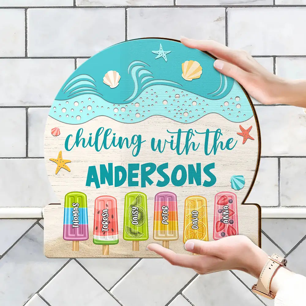 Discover the charm of family unity with the "Popsicle Chilling Family" Personalized Custom Shaped Wood Sign – a delightful summer-themed decor piece that radiates happiness and togetherness! This unique sign is not just a gift; it's a symbol of joy and warmth, perfect for husbands, wives, couples, mothers, fathers, parents, and grandparents alike.