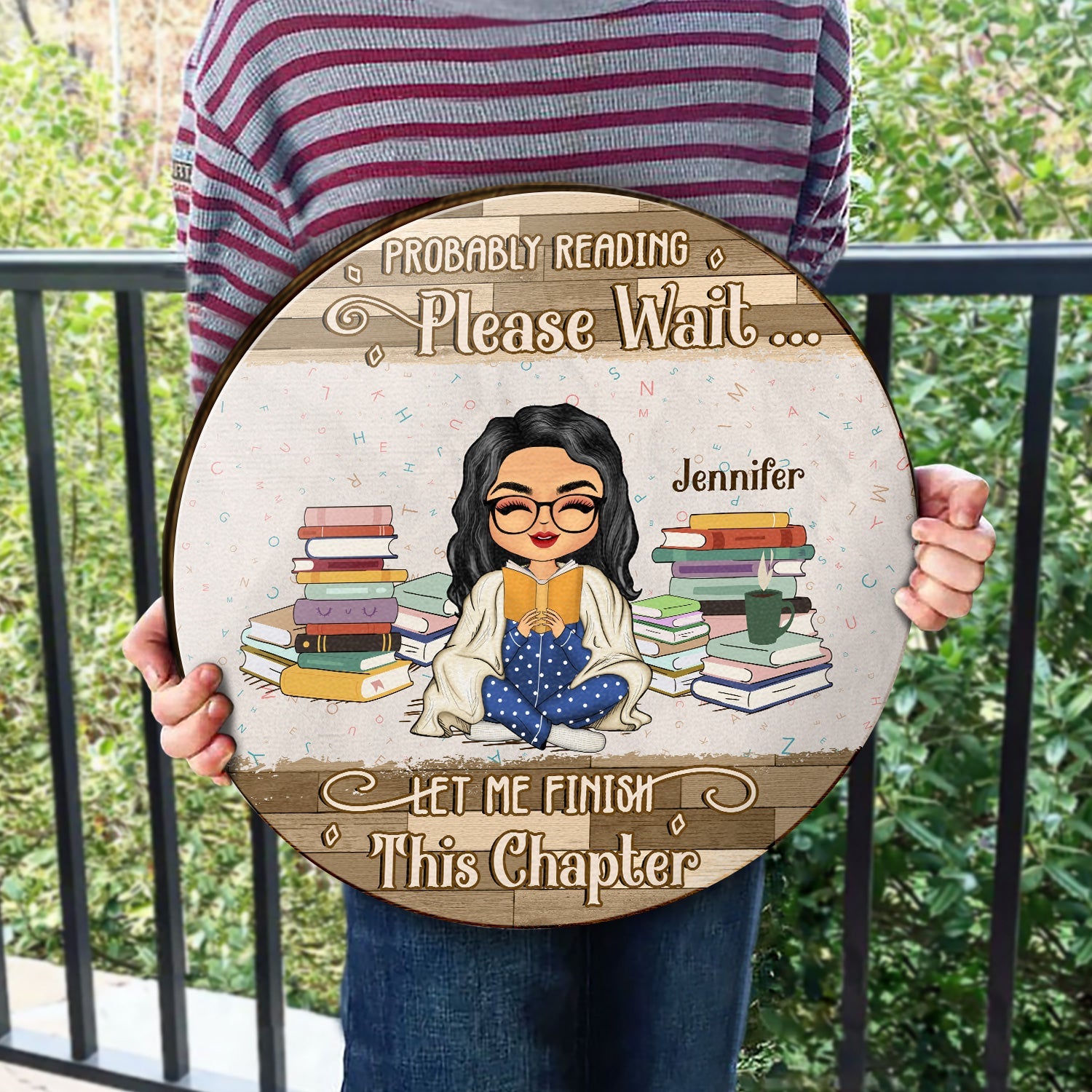 Probably Reading Please Wait - Gift For Book Lovers - Personalized Custom Wood Circle Sign