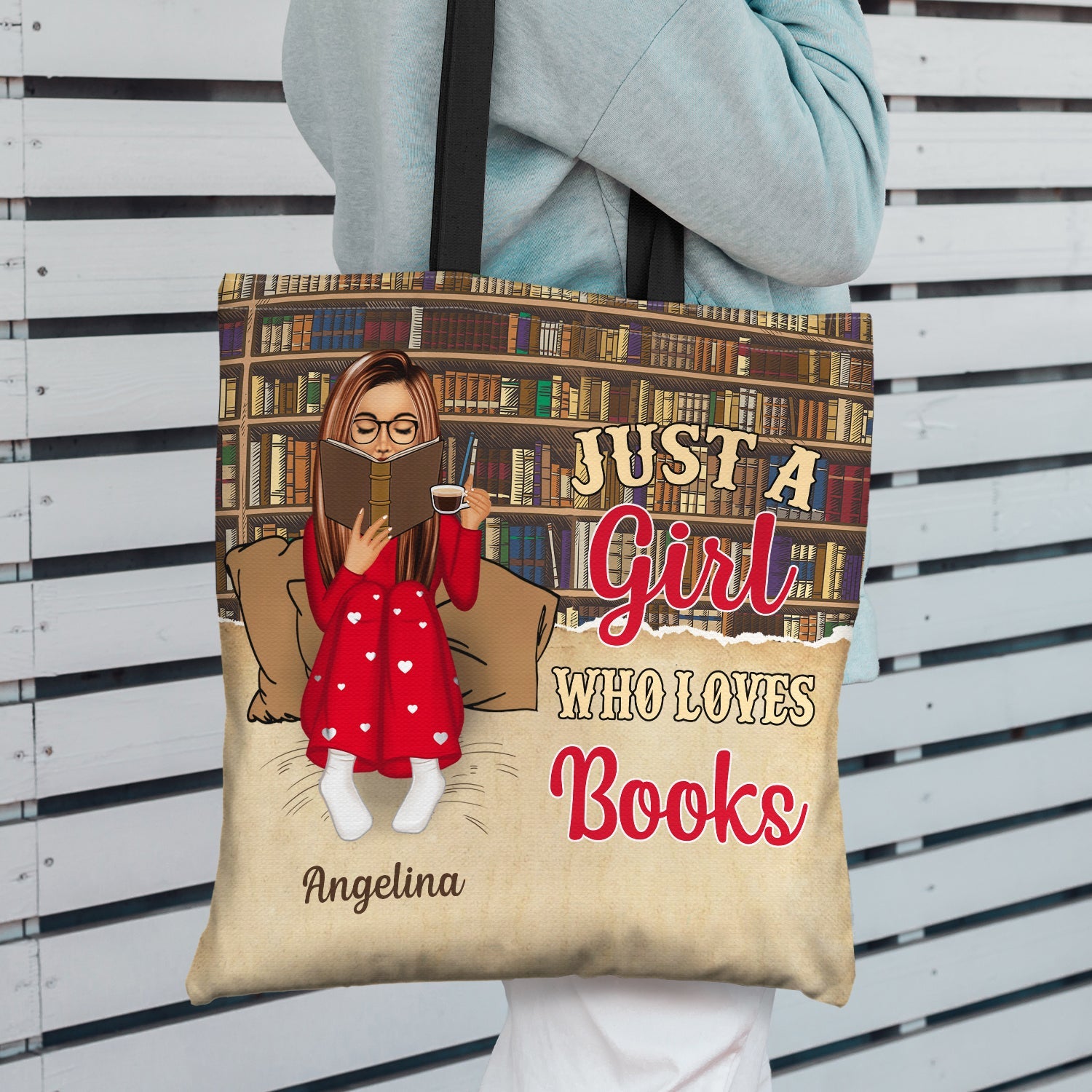 Reading Just A Girl Who Loves Books Bag - Gift For Book Lovers - Personalized Zippered Canvas Bag