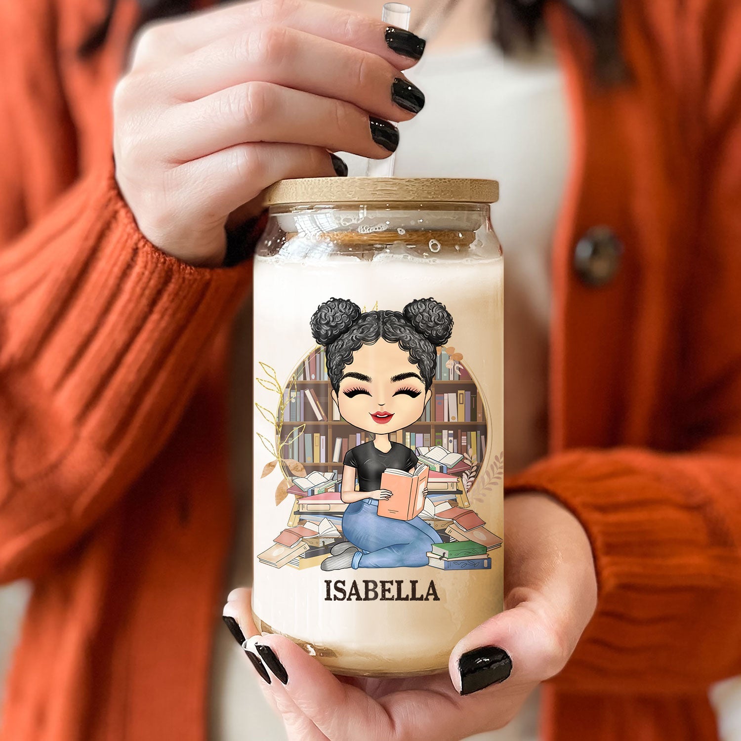 - Package: 01 clear glass can with a wooden lid and acrylic straw.
