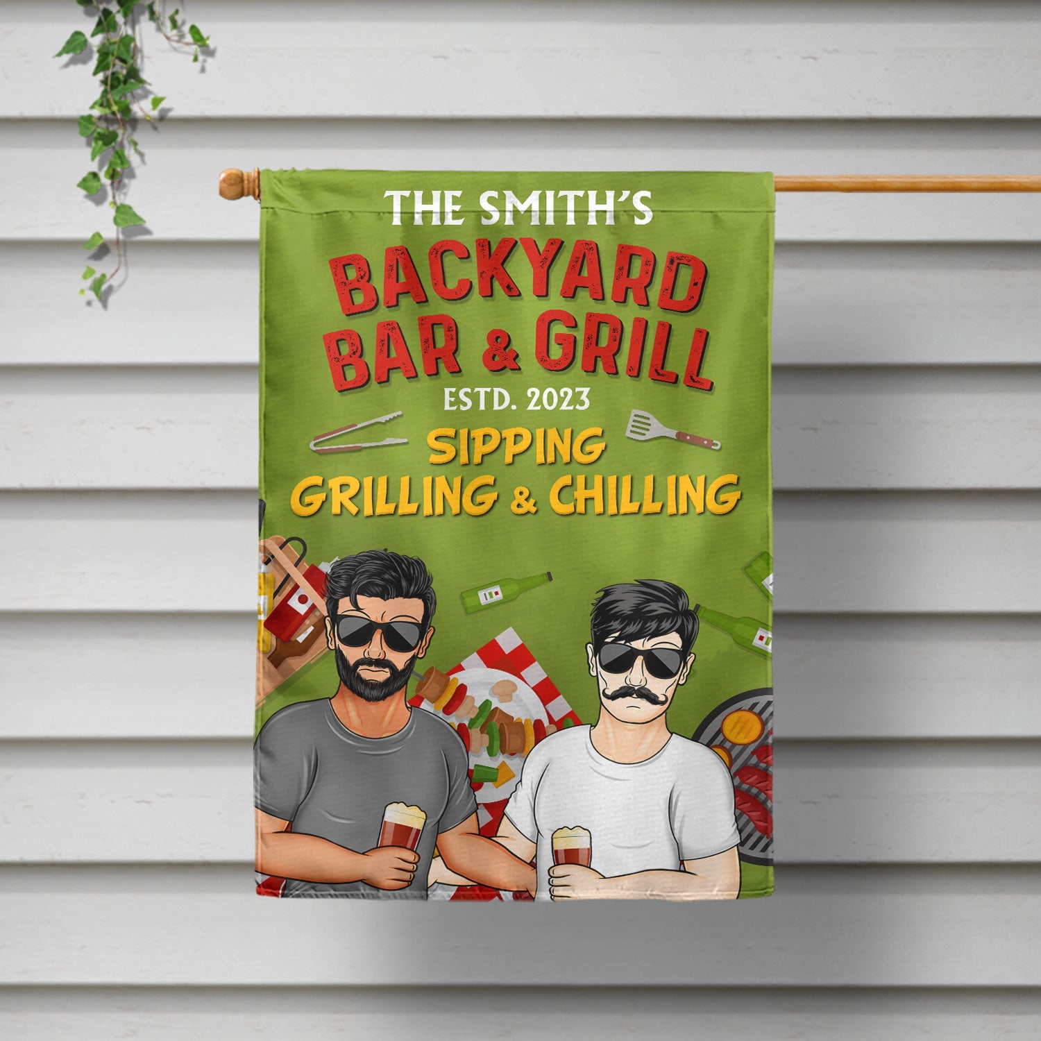 Sipping Grilling & Chilling - Backyard Decoration, Gift For Couples - Personalized Custom Flag