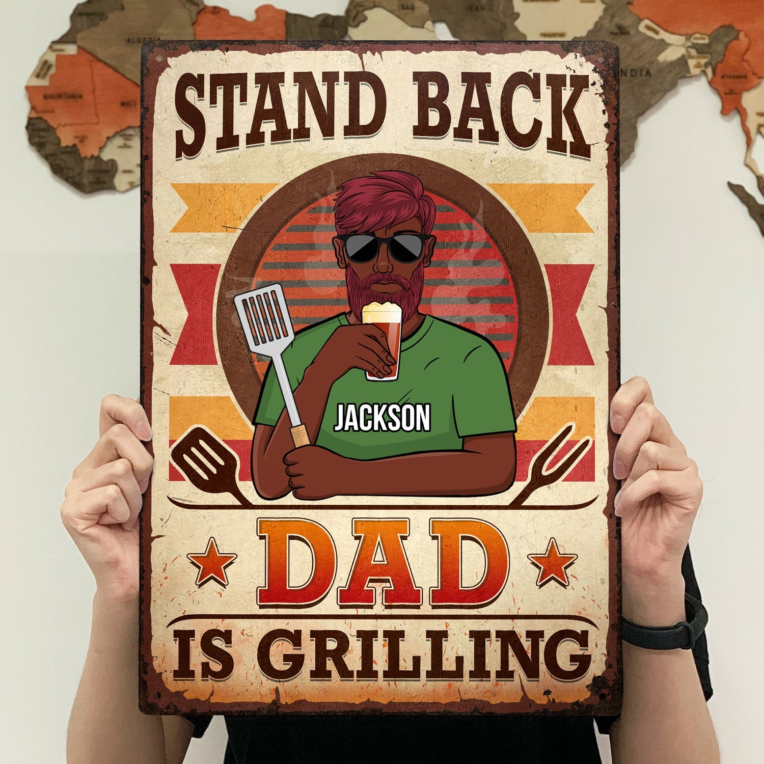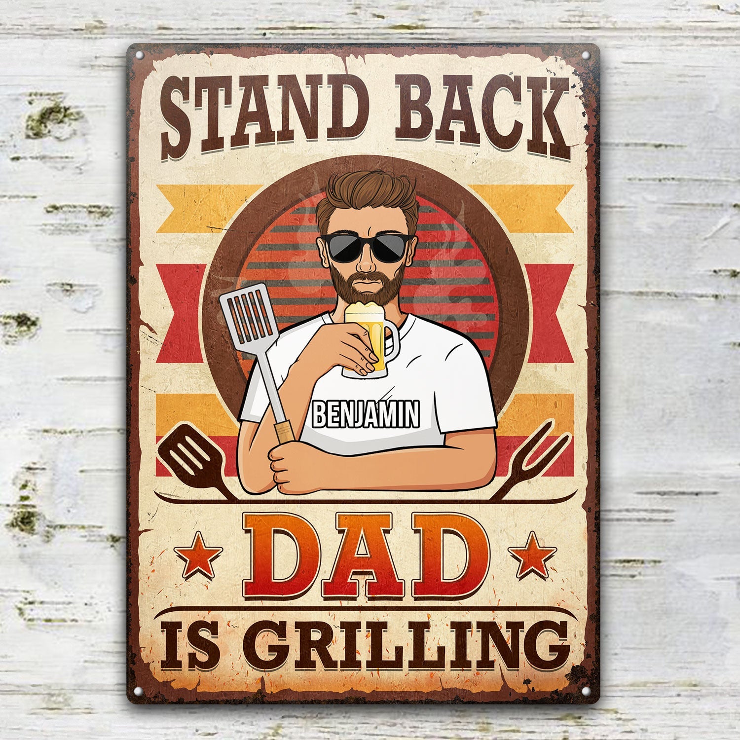 Stand Back Dad Grandpa Is Grilling - Gift For Father - Personalized Custom Classic Metal Signs