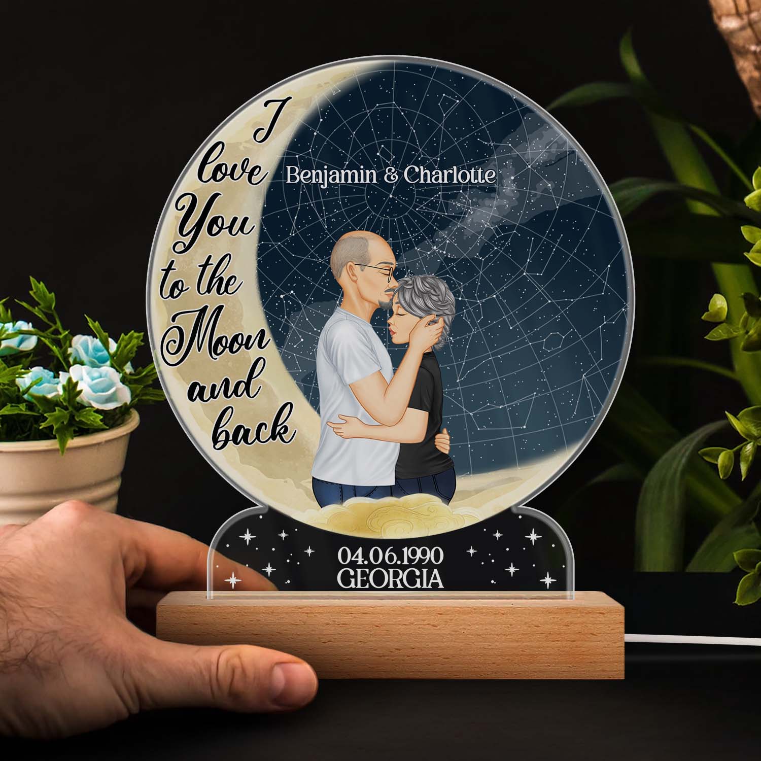 Star Map I Love You To The Moon And Back - Anniversary Gift For Couples - Personalized Custom 3D Led Light Wooden Base