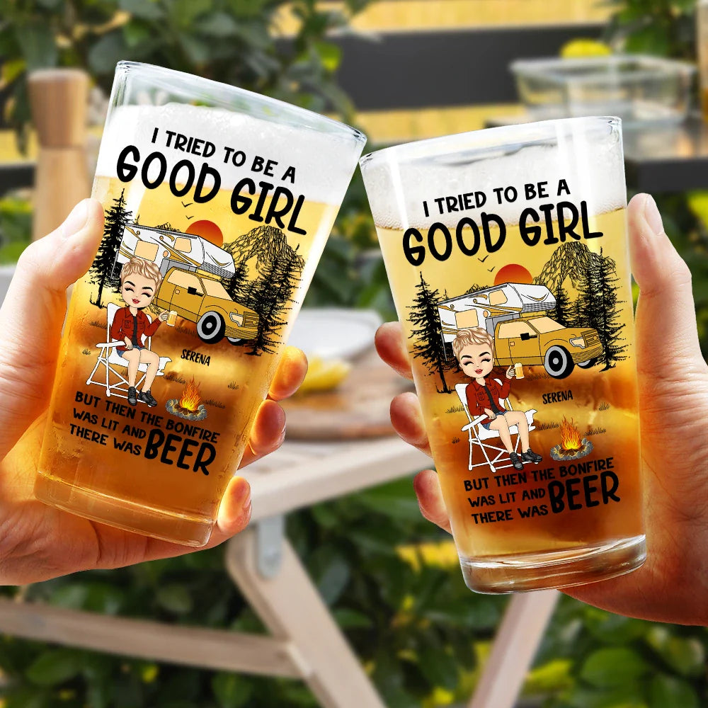 The Bonfire Was Lit Camping - Personalized Beer Glass
