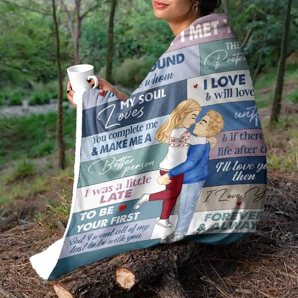 Wrap yourselves in warmth and love with The Day I Met You Couple - Personalized Fleece Blanket, Sherpa Blanket. This cozy blanket makes a delightful gift for couples, husbands, wives, moms, dads, boyfriends, and girlfriends on Valentine's Day, Mother's Day, Father's Day, Thanksgiving, Christmas, birthdays, and anniversaries.