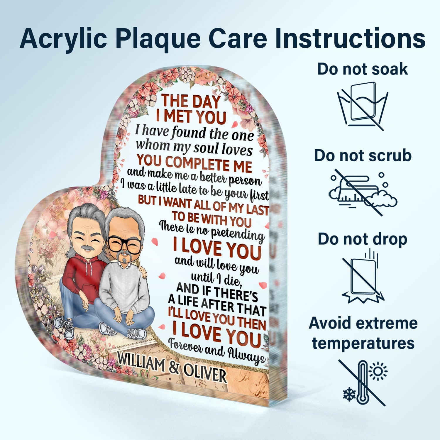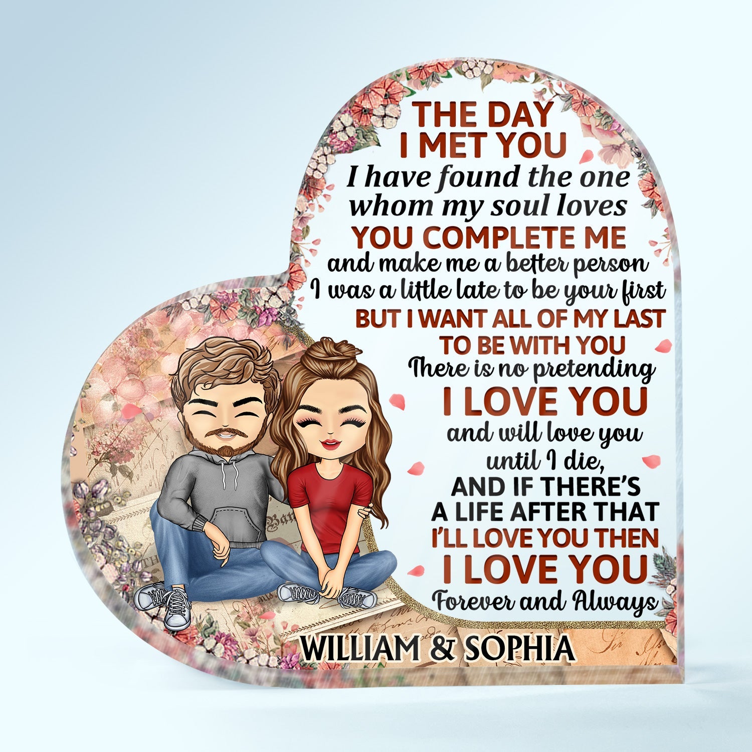 The Day I Met You Husband Wife Couples - Home Decor, Anniversary, Birthday Gift For Spouse, Husband, Wife, Boyfriend, Girlfriend - Personalized Custom Heart Shaped Acrylic Plaque