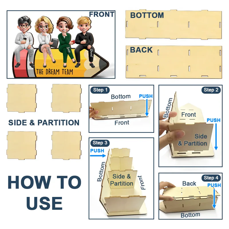 Celebrate teamwork in style with The Dream Team - Personalized Wooden Pen Pencil Holder - a thoughtful gift for teachers, colleagues, and officers that sparks delight and unity. Ideal for Back to School, Christmas, Teacher Appreciation Day, Father’s Day, Mother’s Day, or birthdays.