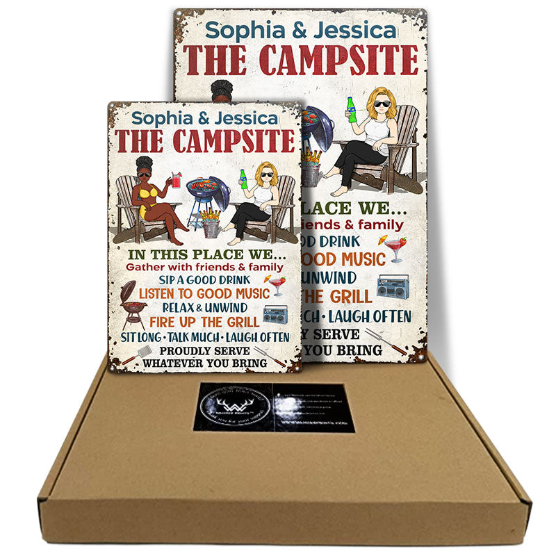 The Patio Bar We Gather With Friends And Family Grilling Couple - Backyard Sign - Personalized Custom Classic Metal Signs