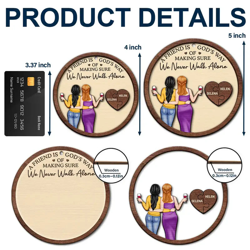 A Friend Is God's Way Of Making Sure We Never Walk Alone - Personalized 2-Layered Wooden Ornament